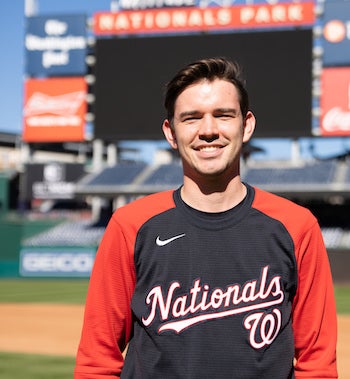 When Hunter Kelly came to George Mason University, he knew right away that he wanted to go into the sport management program in the College of Education and Human Development. Little did he know that by the time he was in his senior year, he would be helping the Washington Nationals with their COVID-19 protocols to keep players and staff as safe as possible.