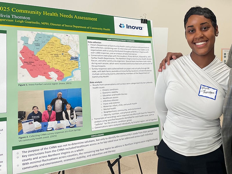 For George Mason University master of public health student Olivia Thornton, completing a practicum at the Inova Fairfax Department of Community Health was an opportunity to step into the field and explore public health in action. Thornton is on track to graduate in Fall 2025.