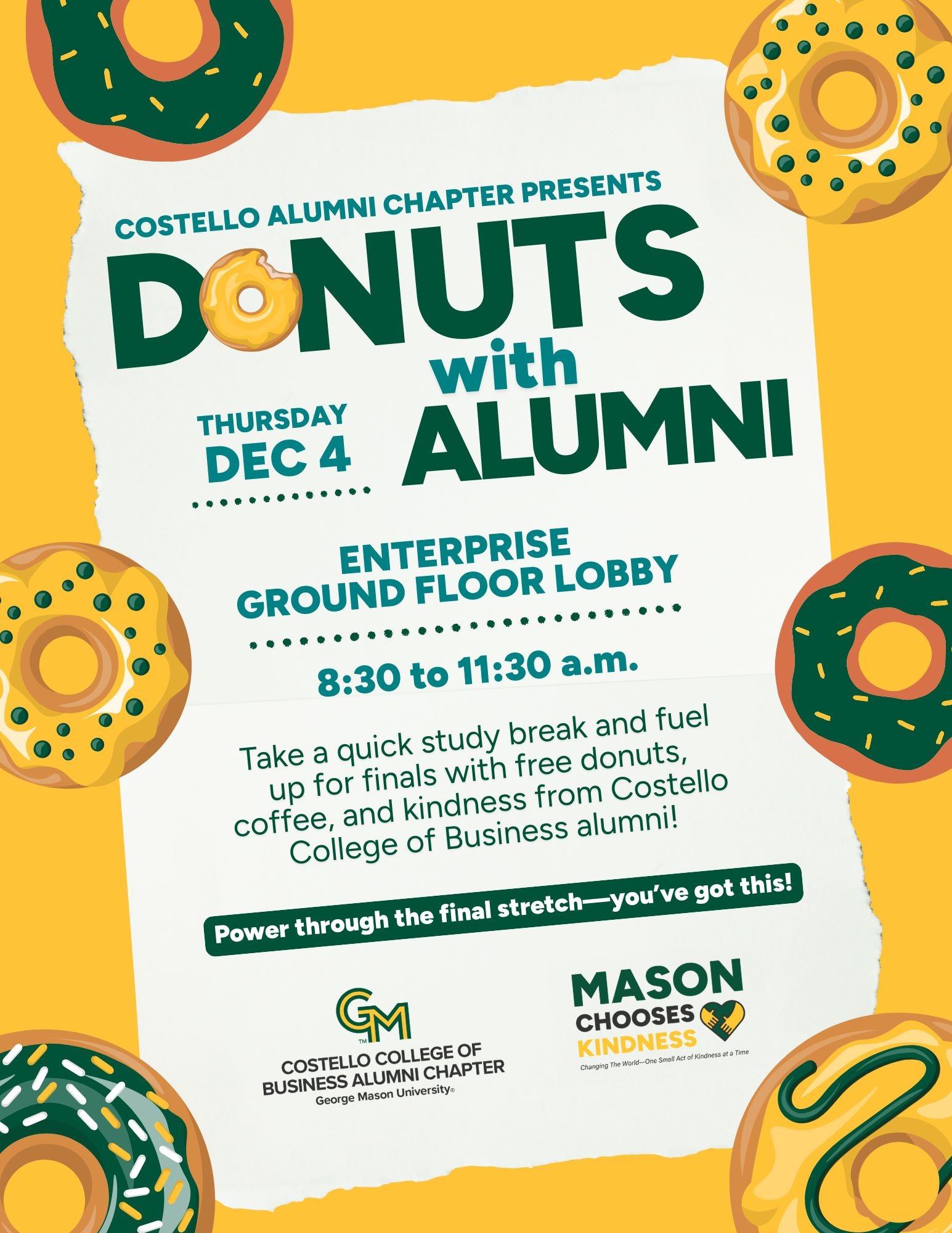 Take a quick study break and fuel up for finals with free donuts, coffee, and kindness from Costello College of Business alumni!